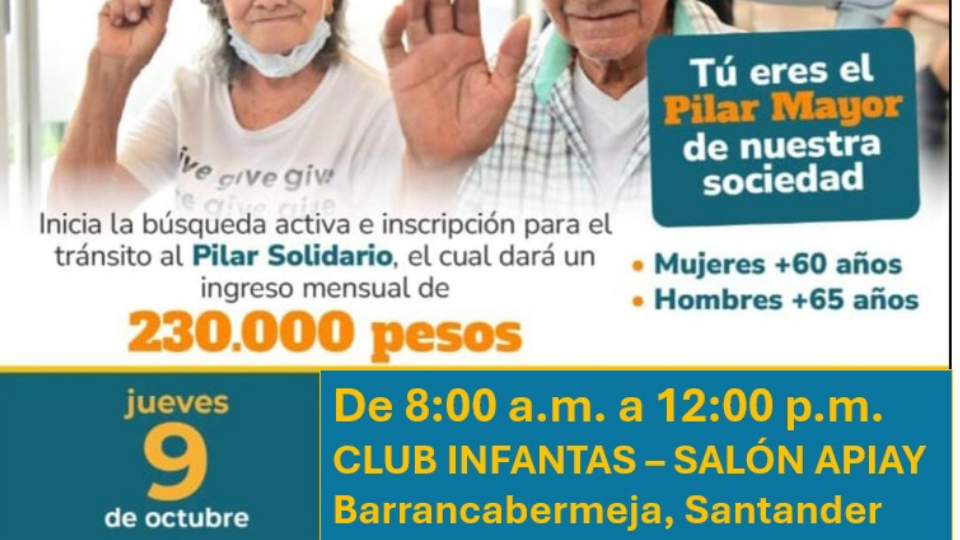 Este jueves 9 de octubre se llevará a cabo una nueva jornada de inscripciones al programa Pilar Solidario en Barrancabermeja. El evento se realizará de 8:00 a.m. a 12:00 m. en dos puntos: el salón APIAI y el Club Infantas.