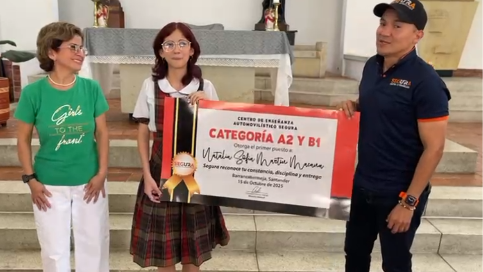 En una ceremonia cargada de emoción, el Centro de Enseñanza Automovilística Segura entregó un especial reconocimiento a Natalia Martín, estudiante del colegio Seminario San Pedro Claver, por su sobresaliente desempeño en las más recientes pruebas ICFES.