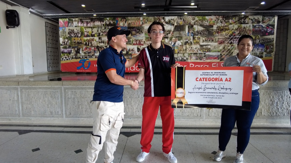 Como parte del reconocimiento, Segura otorgó a Ángel un curso gratuito de conducción, beneficio que la empresa brinda a los mejores puntajes de estas pruebas como parte de su compromiso con el desarrollo académico y personal de los jóvenes de Barrancabermeja.