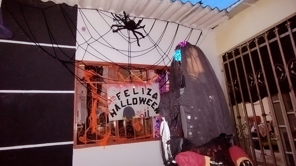 A pocos kilómetros de allí, en el barrio Alcázar, otra casa deslumbra con una colorida decoración inspirada en personajes como Jack, La Catrina, fantasmas y calabazas. Su dueña mantiene esta tradición desde hace más de 20 años como una forma de celebrar el cumpleaños de su hijo, nacido el 30 de octubre.