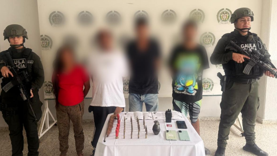 La acción policial se desarrolló en la vereda San Juan de la Carrilera, donde se realizaron tres diligencias de registro y allanamiento que permitieron la captura en flagrancia de cuatro personas, señaladas de integrar el grupo delictivo común organizado conocido como “Los de Yorman”.
