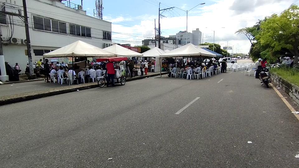 Alrededor de 200 adultos mayores se concentraron en la avenida de Barrancabermeja para protestar por el presunto incumplimiento en la apertura de comedores comunitarios, un servicio del que dependen cientos de beneficiarios en el distrito.