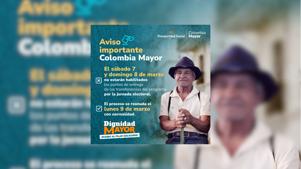 Los pagos del programa Colombia Mayor tendrán una pausa temporal durante el fin de semana debido a la jornada electoral que se realizará en el país. La medida fue informada por Prosperidad Social, entidad encargada de administrar este subsidio dirigido a los adultos mayores.